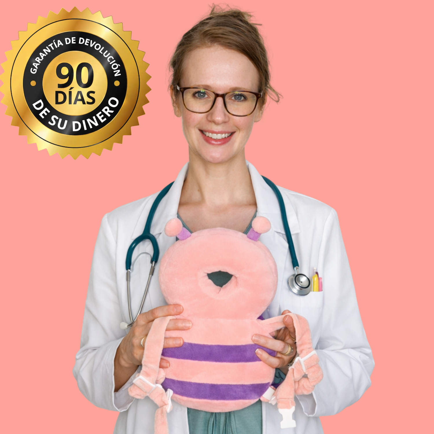 Excellent question. It's made with high-density PP cotton —the same material used by leading brands that sell the same product for twice the price. The cushion has a hollow center to avoid putting pressure on the developing skull. It's machine washable and has been used by thousands of families without any problems. If for any reason you're not satisfied, you have 60 days to return it .